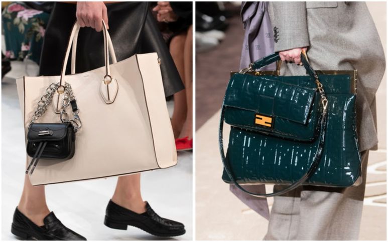Можно взять микро-сумку в пару к шопперу или сочетать две примерно одинаковые по размеру. Главное — не противоречить стилю: спортивная дутая сумка вряд ли подружится с кроколильей кожей.