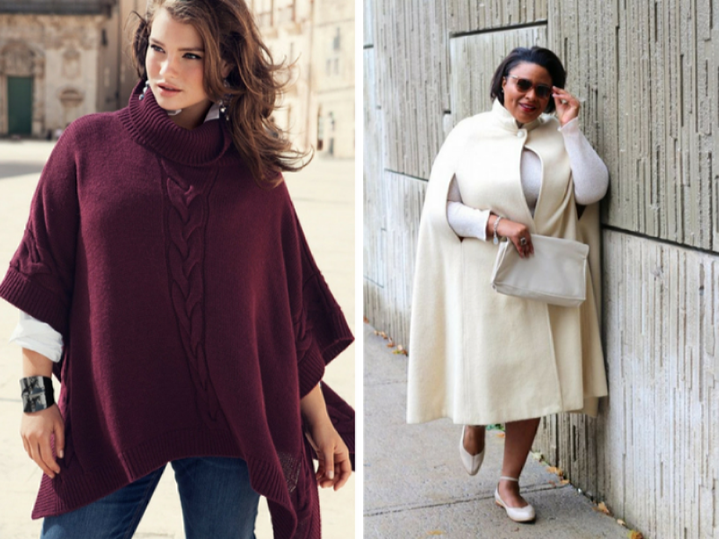 Плавность линий и свободный крой пончо и кейпов отлично скрывают угловатость и недостатки полной фигуры. В такой одежде невероятно тепло и уютно, а обилие расцветок позволяет сделать образ очень разнообразным и совершенно не скучным. Совет – избегай чересчур мелкого и замысловатого принта. Оттенки серого, бежевого и синего смотрятся на пышных дамах намного эффектнее.
