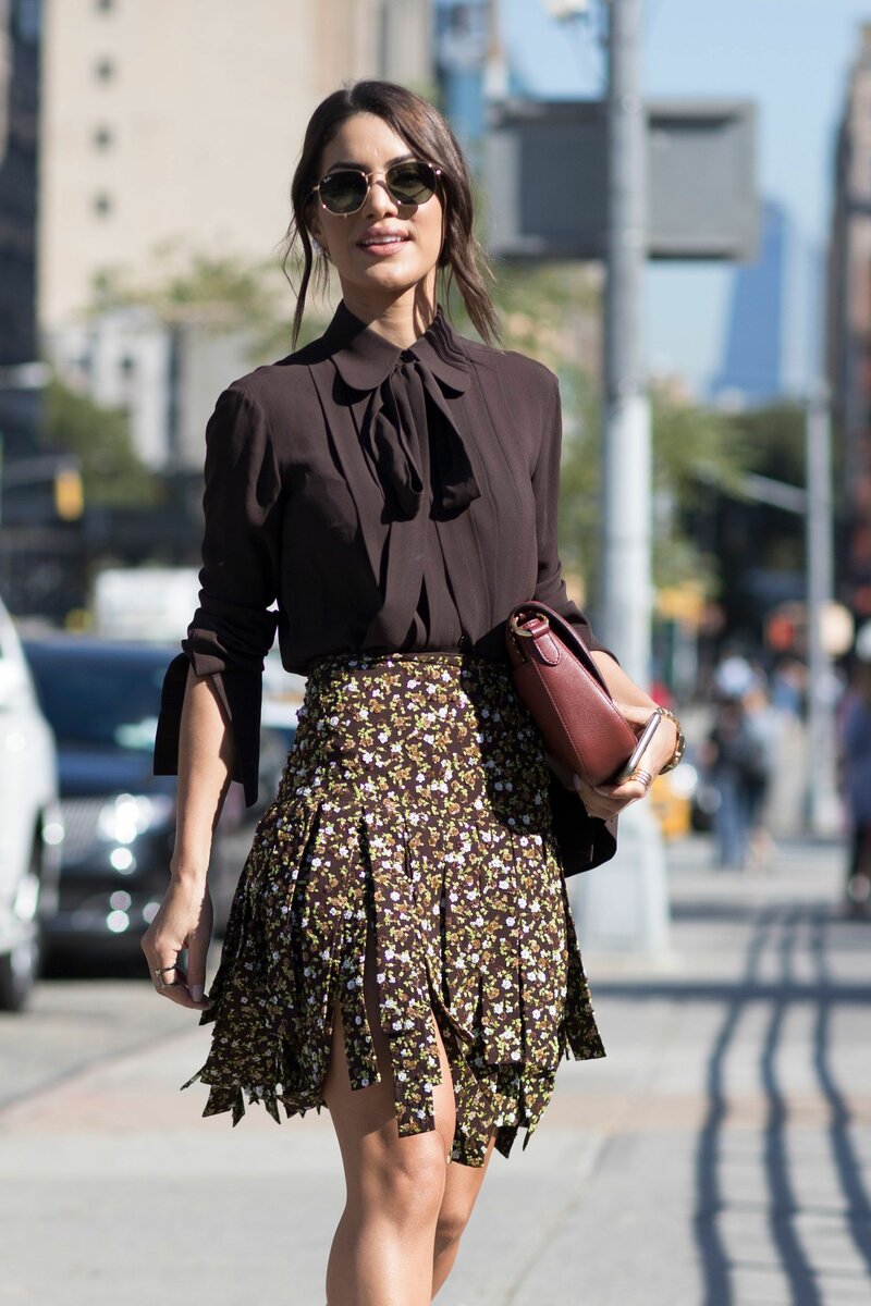 Если дама хочет надеть черную блузку и белую юбку, какую обувь необходимо подобрать к ней? К ней подойдет обувь темного тона, либо она должна сочетаться с сумкой. В последнее время традиция «сумка-туфли – тон в тон» не работает. А вот черную юбку можно сочетать по цвету с любой блузой или даже рубашкой. По текстуре материала, облачение верха и низа «конфликтовать» не должно.
