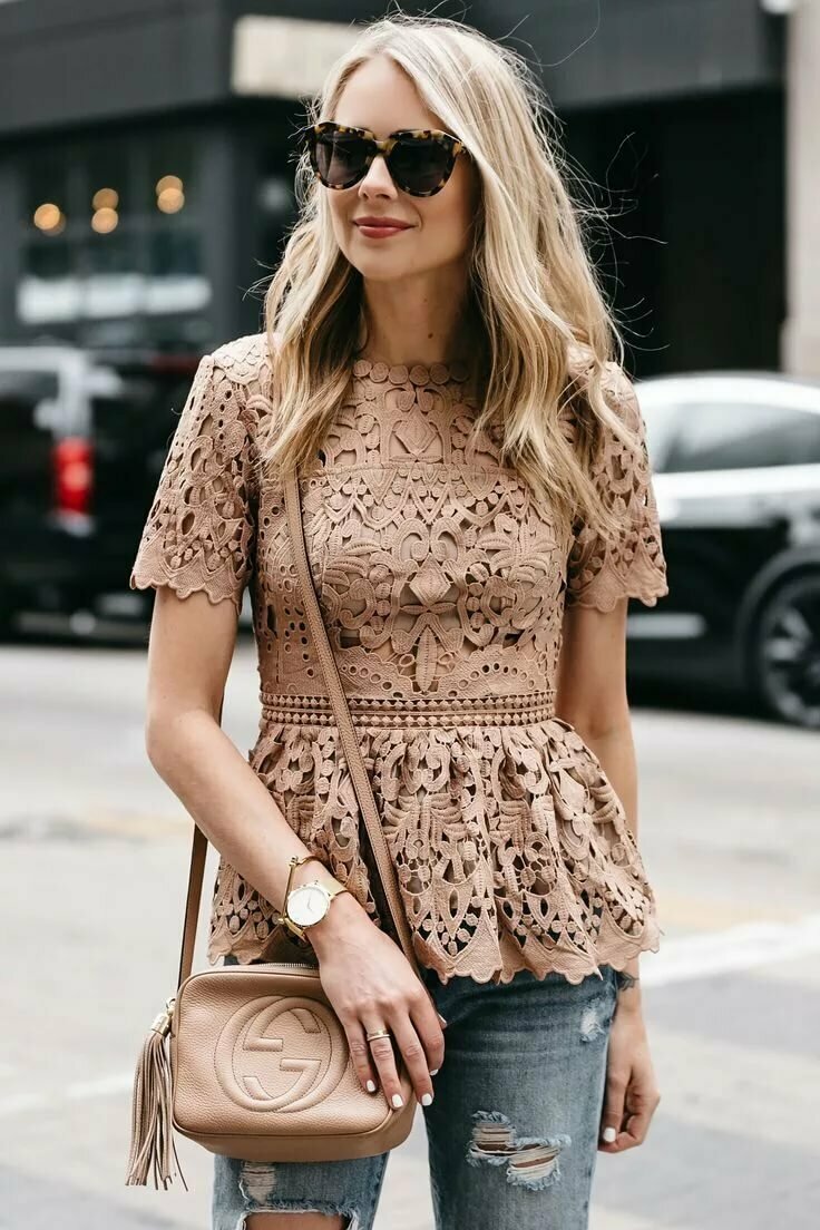 Вариантов с чем носить кружевную блузку черного и белого тона достаточно много.