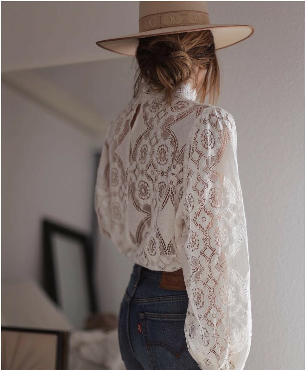 - Блузки из белого кружевного материала стали востребованными среди женщин постарше. Деловым дамам, наскучавшимся от классики, стилисты предлагают добавить красок в образ, при этом, не убавляя женственности. Прозрачную кружевную блузу белого цвета прекрасные дамы сочетают с великолепным гипюровым бельем;